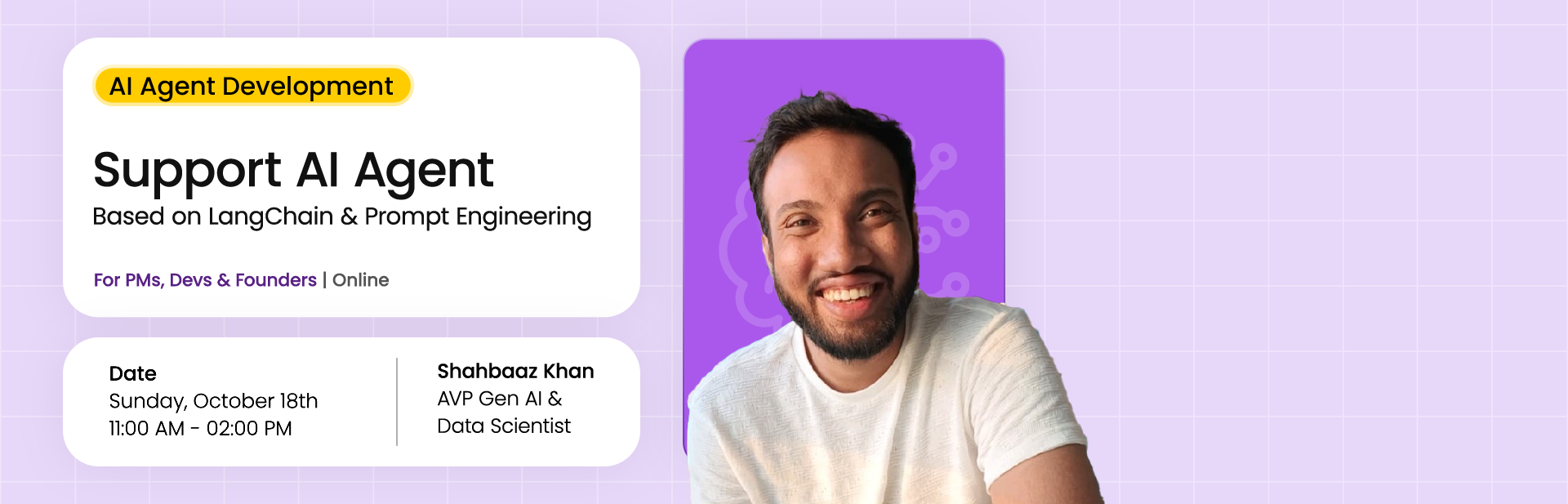 In this 3-hour live workshop, you’ll dive into LangChain and Prompt Engineering to build a working Support AI Agent from scratch. This session is perfect for beginners with basic Python knowledge and professionals looking to upskill in AI-driven automation.