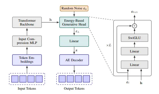 The underlying backbone of a CALM often remains the Transformer architecture—specifically, the decoder-only stack, similar to what powers GPT models. The core difference is found in the Output Head and the Training Objective.